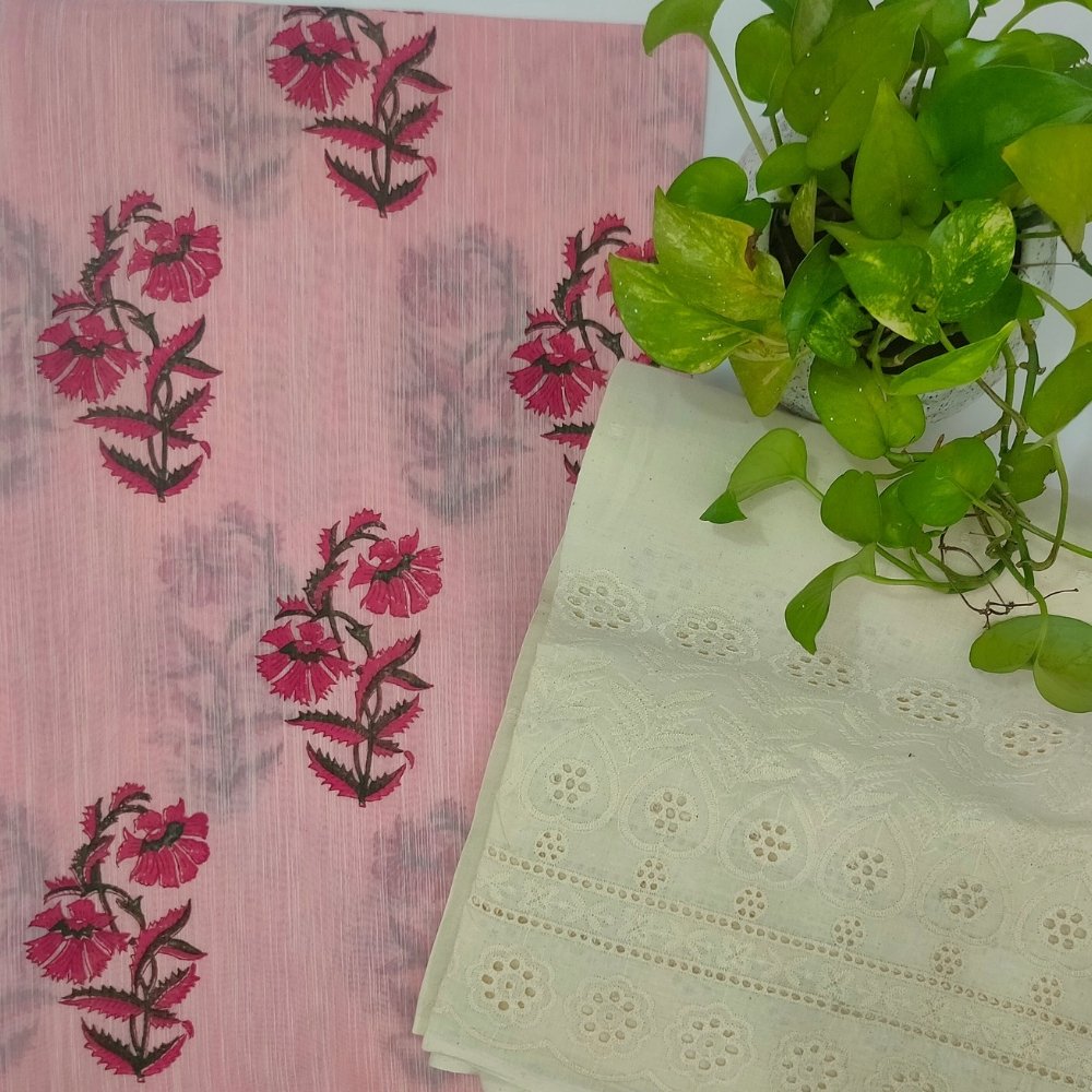 Our designer chanderi cotton two piece dress material showcases traditional craftsmanship and natural elegance. Soft, breathable, and eco-friendly , the fabric meets intricate handblock prints, creating unique and sustainable clothing perfect for stylish everyday wear or special occasions. Visit our women’s page to have a look at the entire range of women clothing.