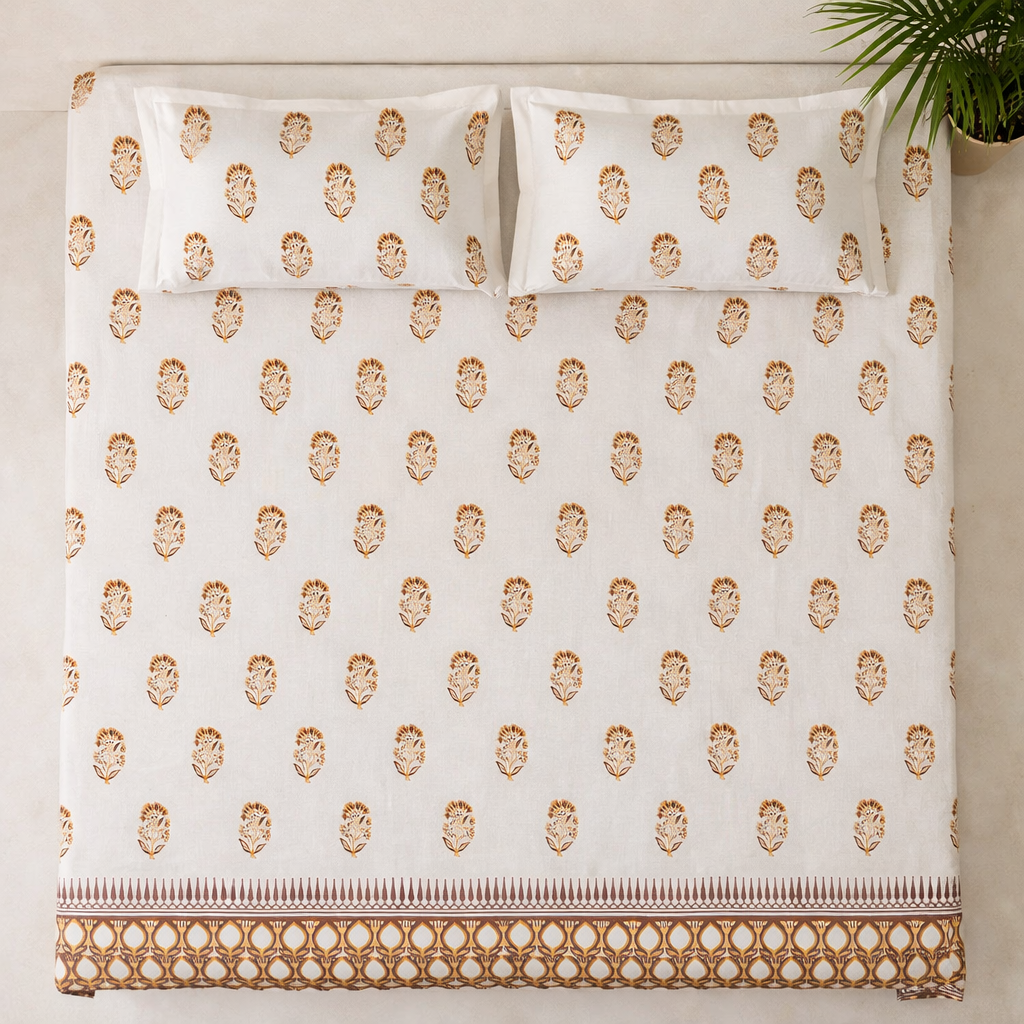 Enhance the elegance of your bedroom with this beautiful Double Bedsheet featuring a white base with modern art paisley border and floral pattern and subtle colors will bring just the right warmth to your bedroom space. This high-quality cotton bedding set offers both comfort and style, perfect for any modern or traditional bedroom. Please visit our Home decor page for other bedsheets and products.