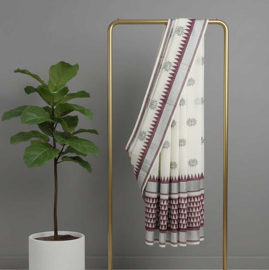 Be the first to review “Aartyz lotus printed Kerala cotton saree”
