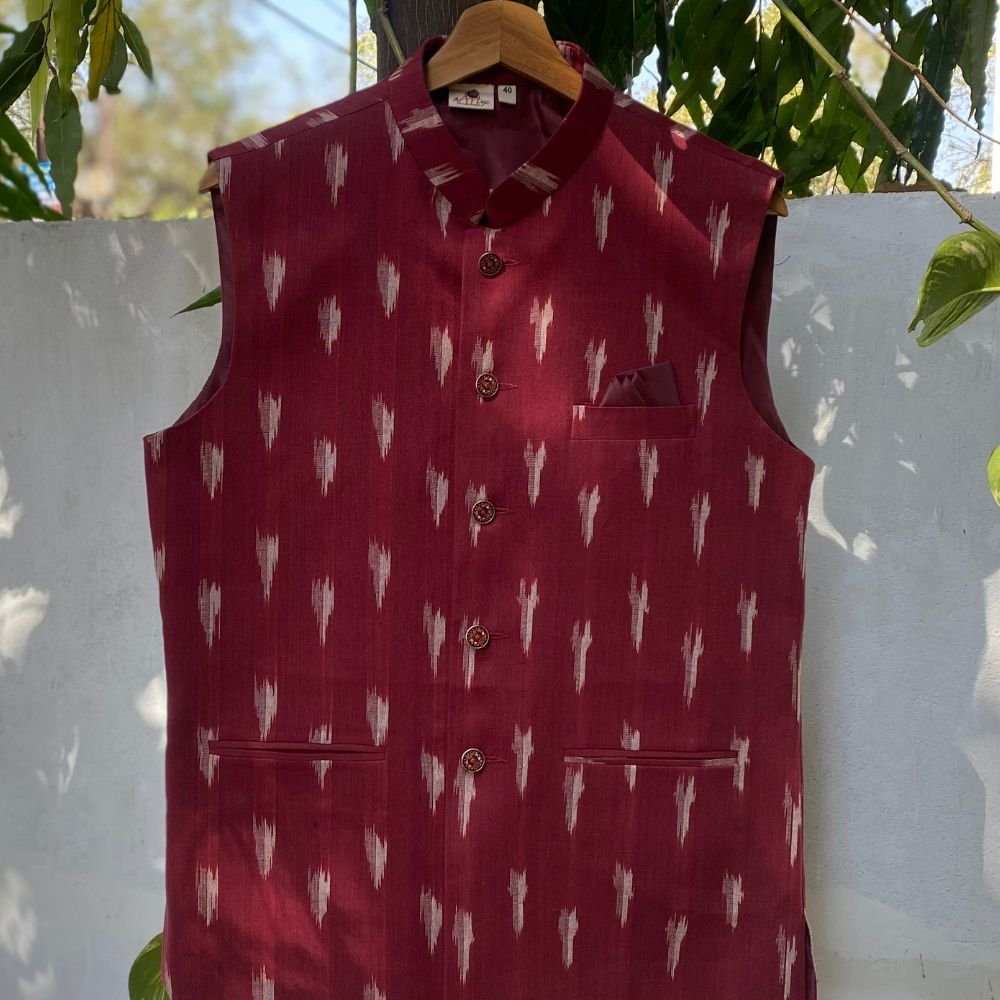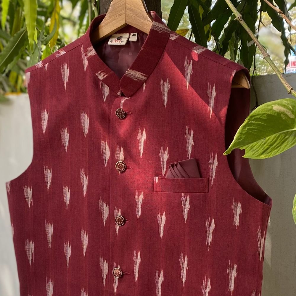 Be the first to review “Aartyz maroon ikat modi jacket”